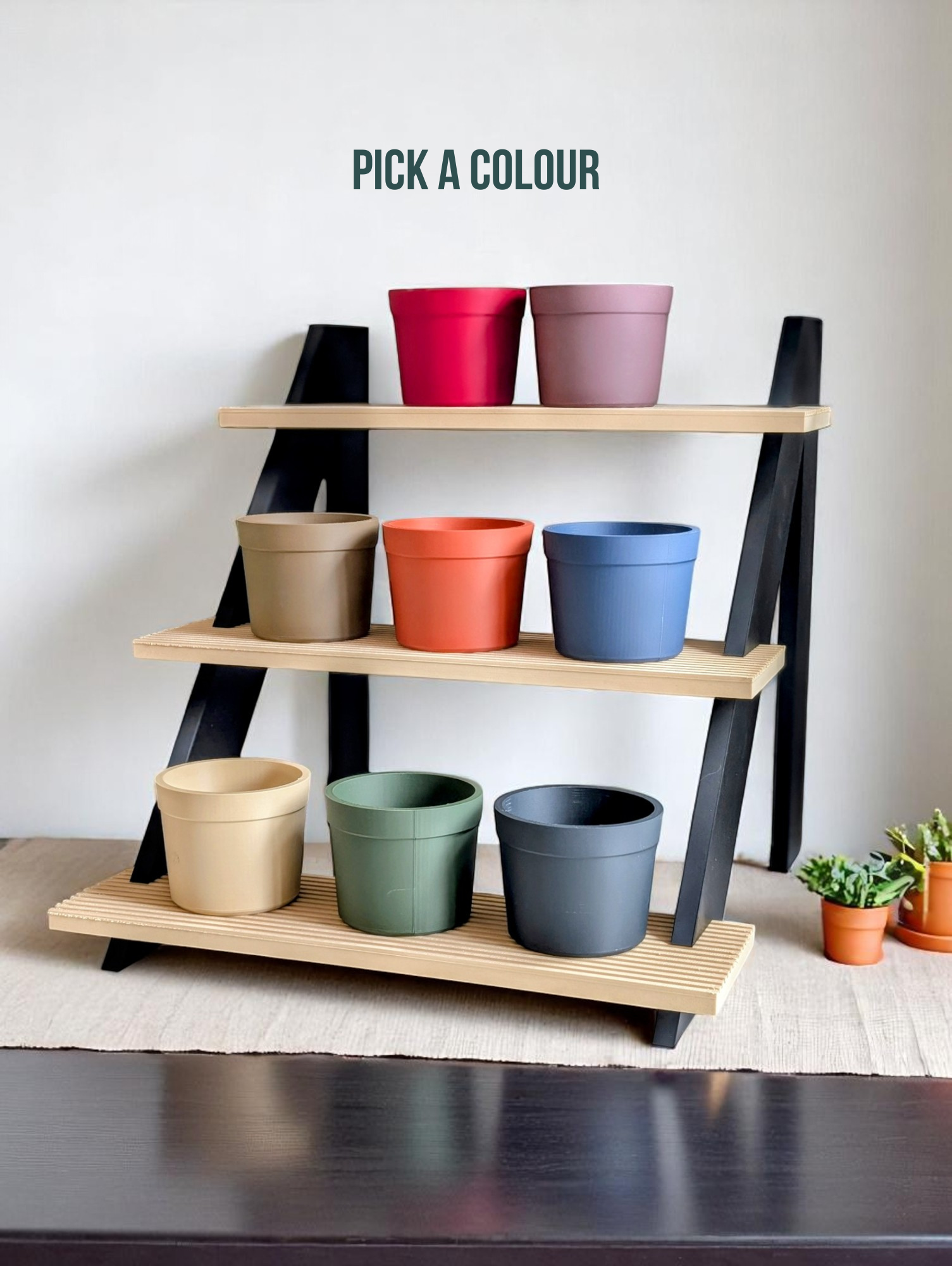 A modern and sustainable 3D printed plant pot made from biodegradable PLA (a renewable, corn-based material). This lightweight yet durable pot offers a passive drainage area, allowing excess water to collect below the nursery pot to prevent overwatering while keeping moisture balanced.