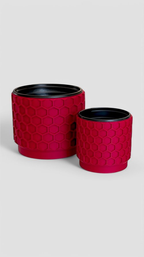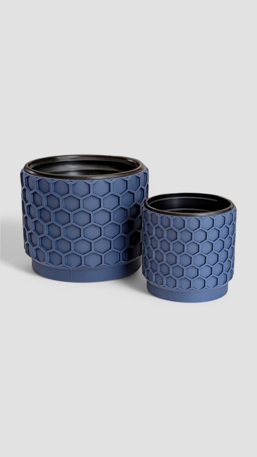 A modern and sustainable 3D printed plant pot made from biodegradable PLA (a renewable, corn-based material). This lightweight yet durable pot offers a passive drainage area, allowing excess water to collect below the nursery pot to prevent overwatering while keeping moisture balanced.